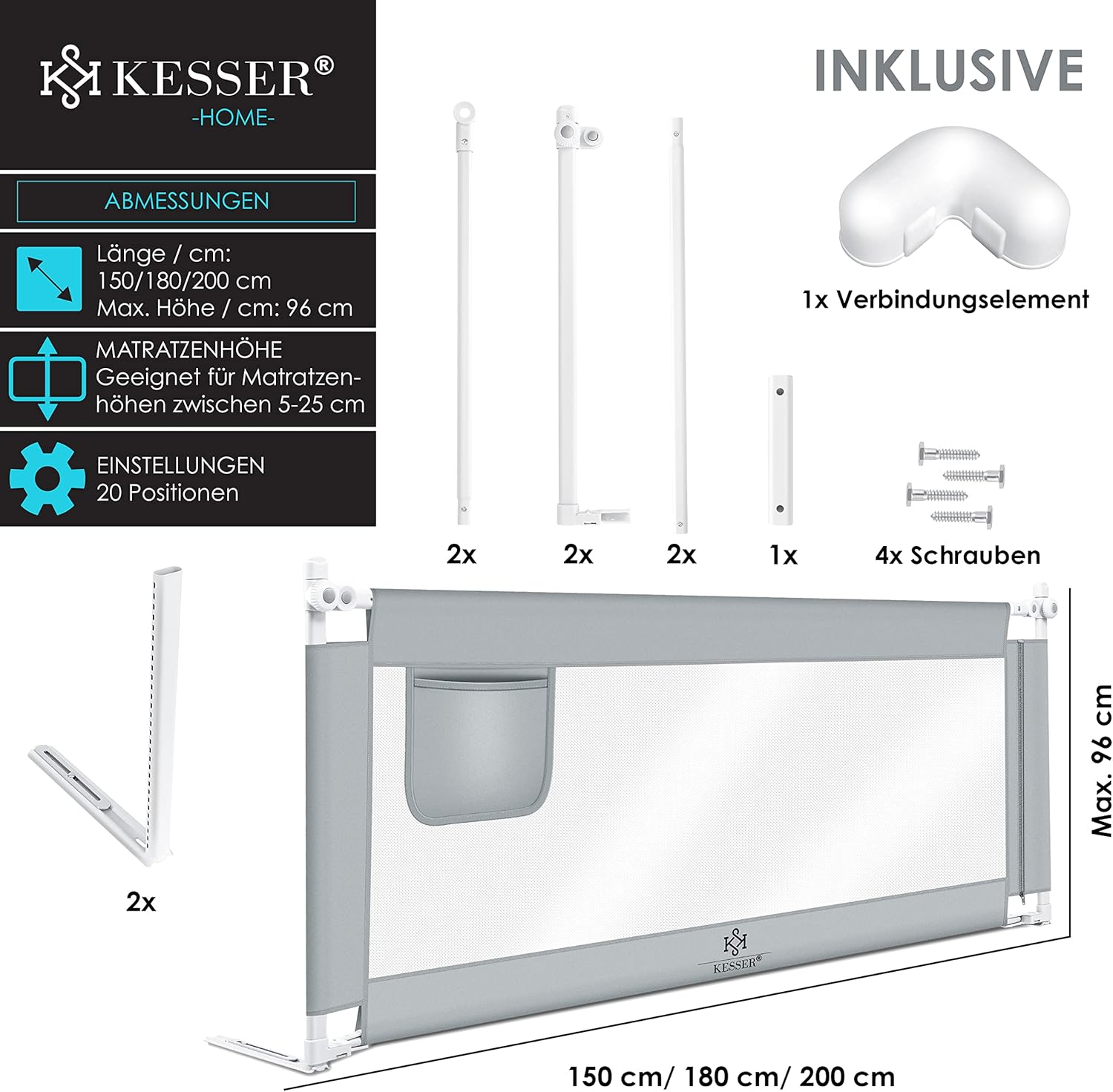 Disponible en 3 longueurs différentes - Finition de qualité supérieure - Interrupteur à double bouton - Pour un sommeil paisible - Design moderne - Matériaux de qualité supérieure - Sans coutures - Convient pour tous les matelas courants - Avec Sac pour jouets, serviettes et bouteilles - Circulation d'air optimale - Beau choix de couleurs - Hauteur de protection idéale pour un sommeil optimal - Fonction supplémentaire comme parc - Hauteur réglable sur 20 positions.