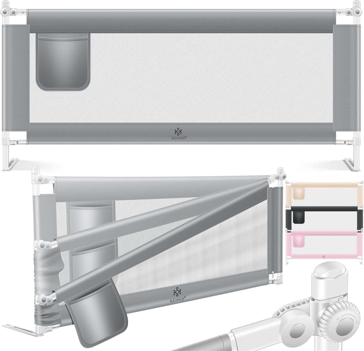 KESSER - Barrière de lit de qualité supérieure avec interrupteur à double bouton pour 20 positions, sûre et stable dans un design moderne et une circulation d'air optimale