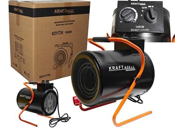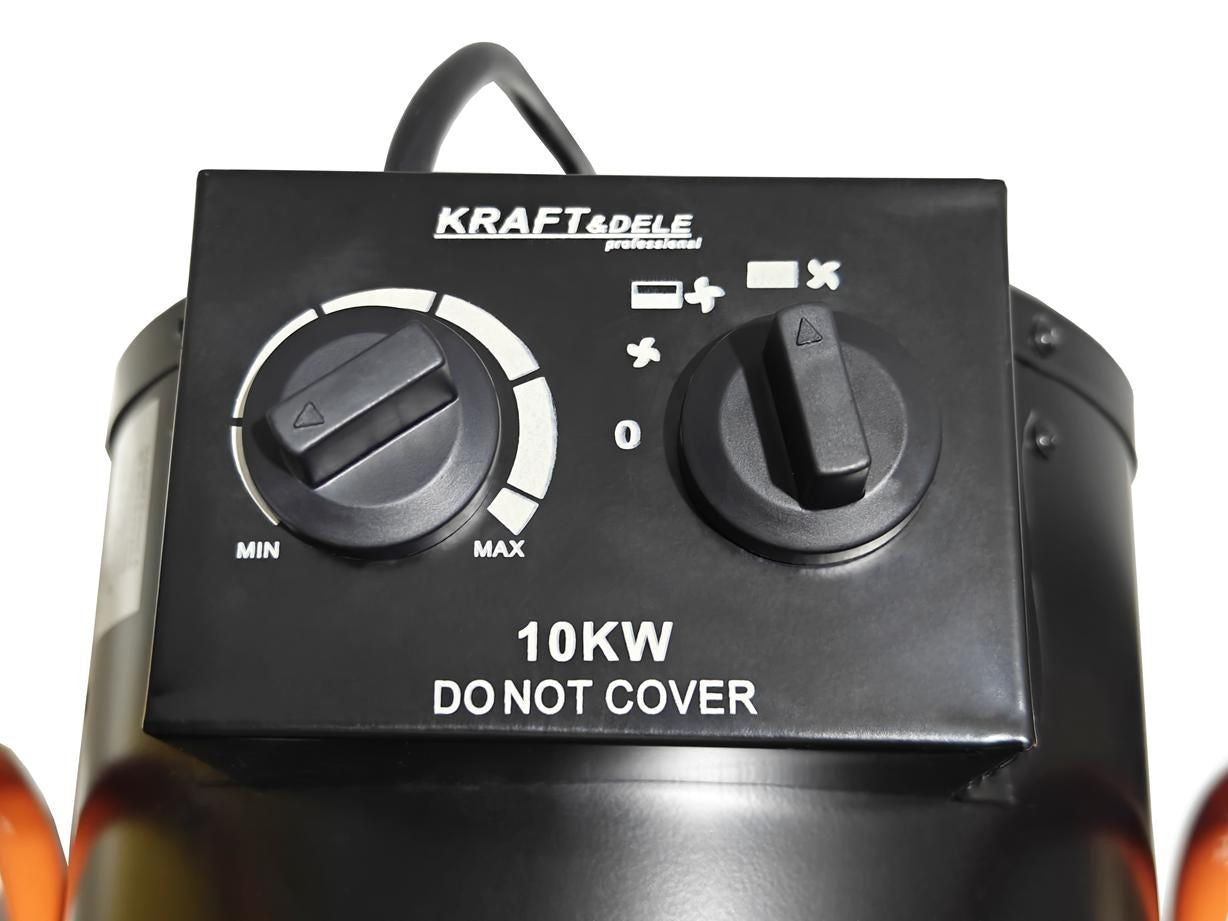 Radiateur électrique d'une puissance de 10 kW. Il est équipé d'un thermostat intégré.