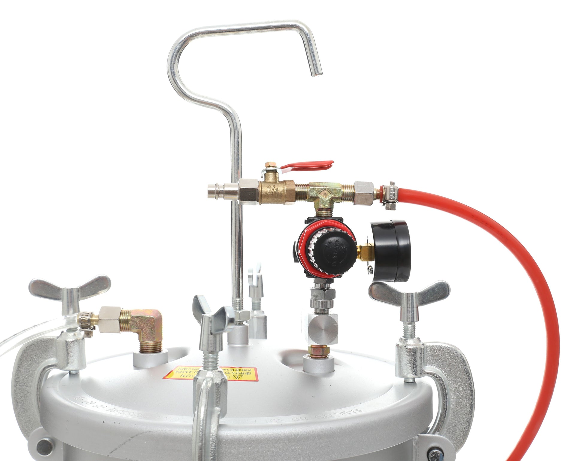 L' unité de peinture professionnelle  est conçue pour peindre efficacement de grandes surfaces et tous types de travaux. Son réservoir de 8 litres est en aluminium léger et son couvercle est équipé d'un détendeur avec manomètre et soupape de sécurité, garantissant un fonctionnement précis et sûr.