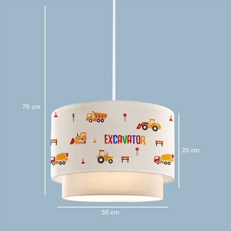 Children's ceiling lamp Jannah pakoworld colorful ?30x70cmA ceiling lamp that will be a reference point for your decoration. Jannah combines classic with modern design. The best choice to create a warm atmosphere in the children's room.Specifications:* Construction of PVC fabric specially designed for resistance lighting.* The design of the hat allows the light to diffuse amazingly when the lamp is on.* Takes place for an E27 bulb, which is not included in the package.Product dimensions:Length: 30 cmWidth: 30 cmTotal Height: 70 cmHat height: 20cmRemarks:The product is delivered in factory packaging. The color shade of the product may differ slightly from its photographic representation on your screen.