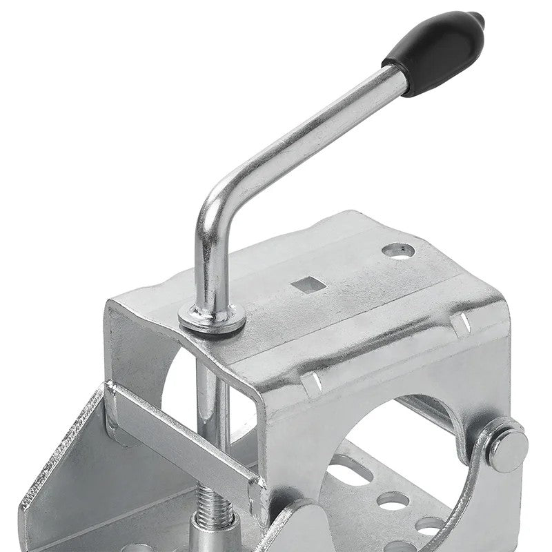 Cette poignée de serrage est conçue pour une utilisation avec un collier de roue jockey de 60 mm. Elle est fabriquée en métal chromé de haute qualité, garantissant une durabilité et une résistance exceptionnelles. La poignée est équipée d'un manche en caoutchouc noir, offrant une prise confortable et antidérapante.