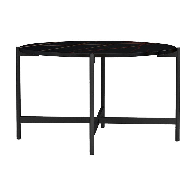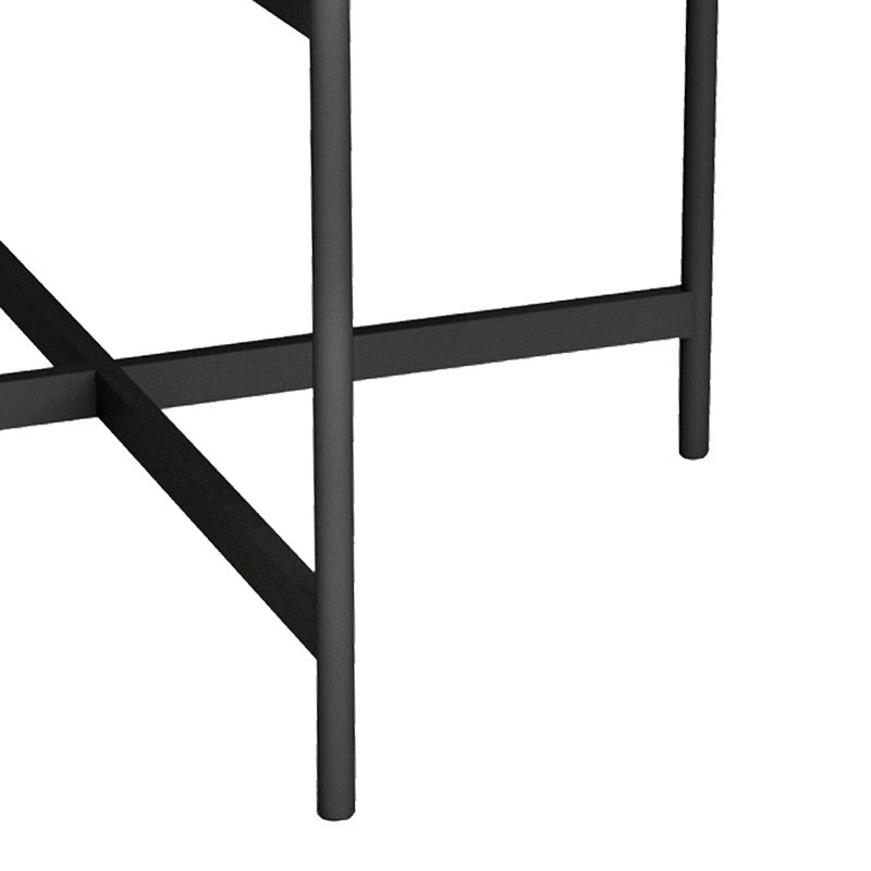 Cette table basse présente un design moderne et élégant, avec son plateau en mélamine effet marbre noir et son piètement en métal noir. Elle constitue un ajout raffiné à tout espace de vie, alliant simplicité et matériaux de haute qualité pour créer une ambiance conviviale et esthétique.